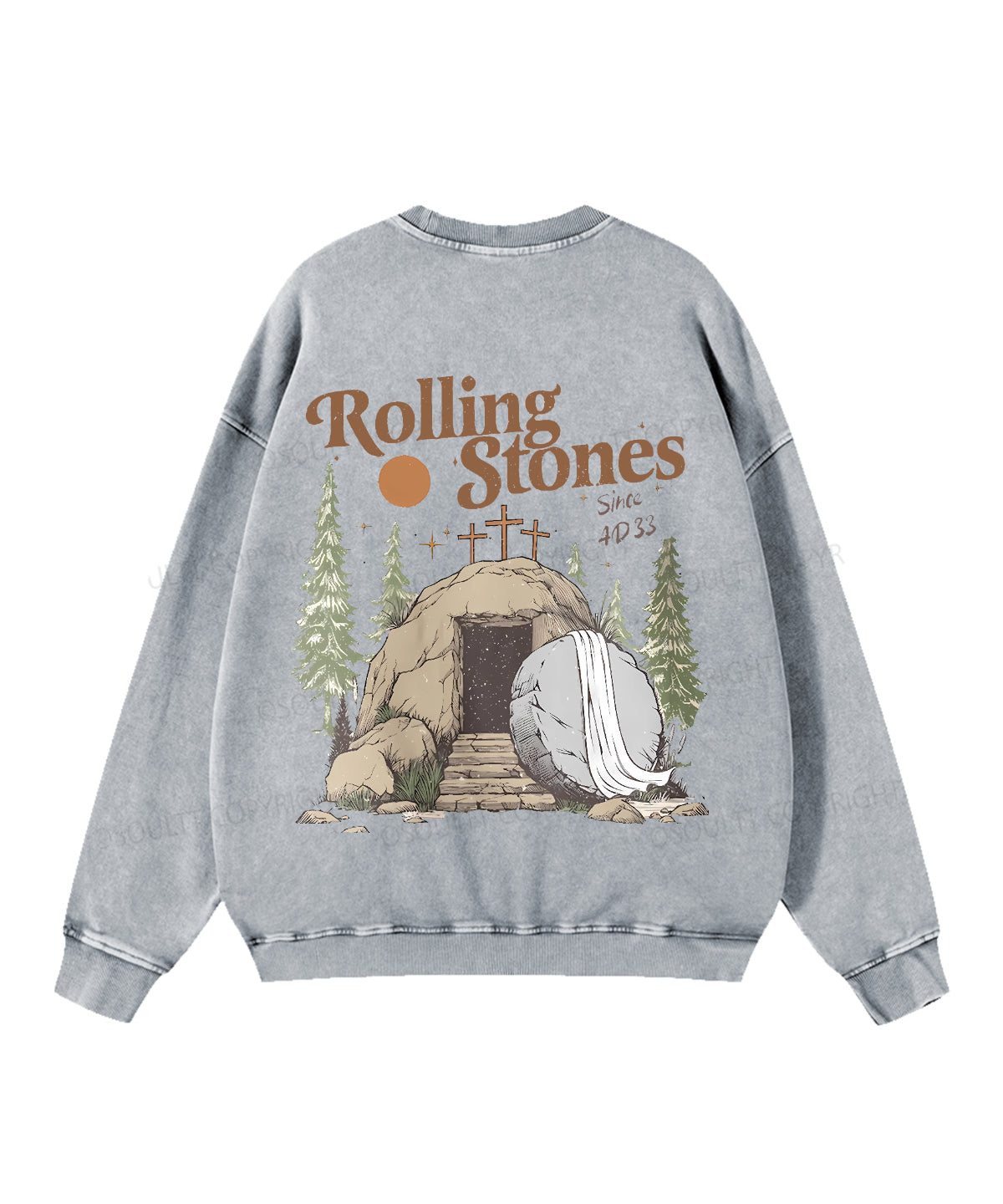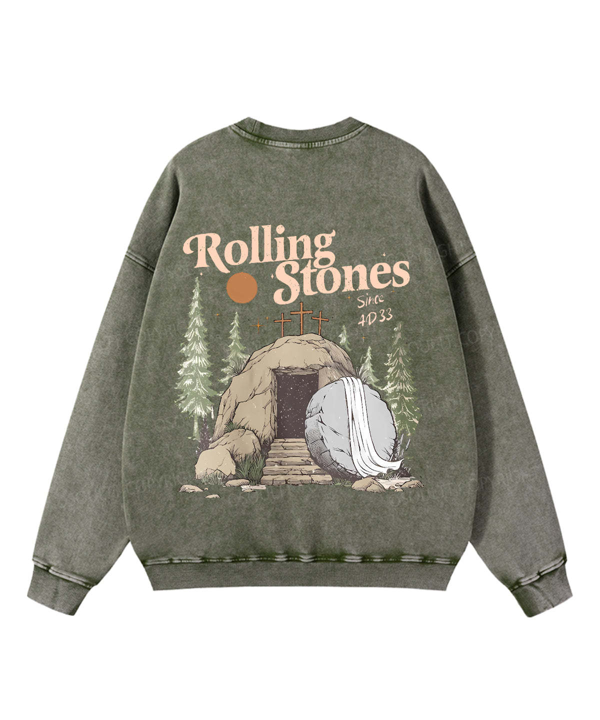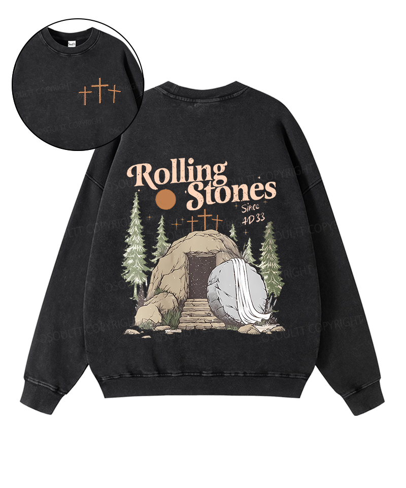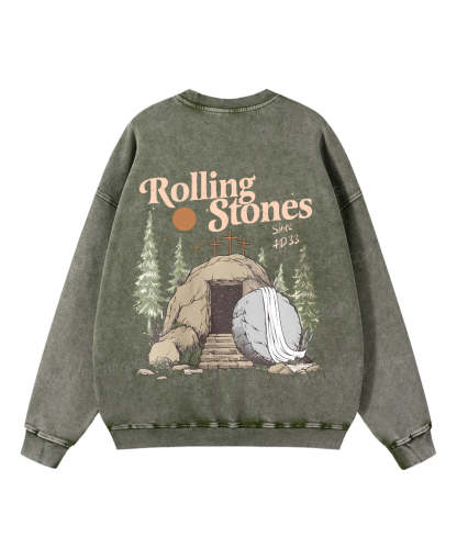The Stone was Rolled Away He is Alive Double Sided Unisex Washed Christian Sweatshirt