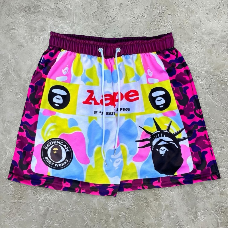 Unique Color-Blocked Camouflage Ape Pattern Shorts