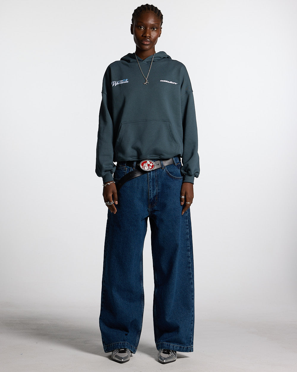 Zipper closure with Cold engraved on button.