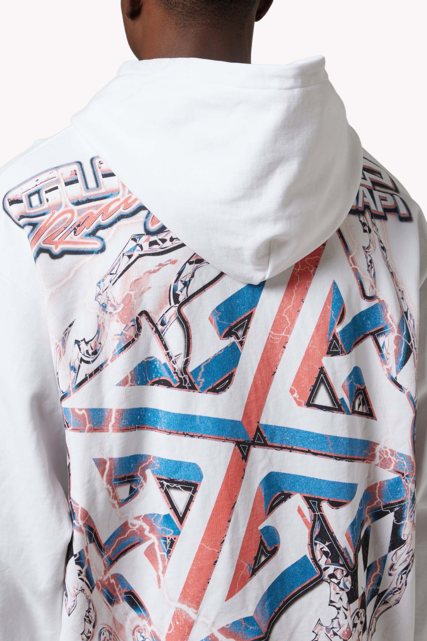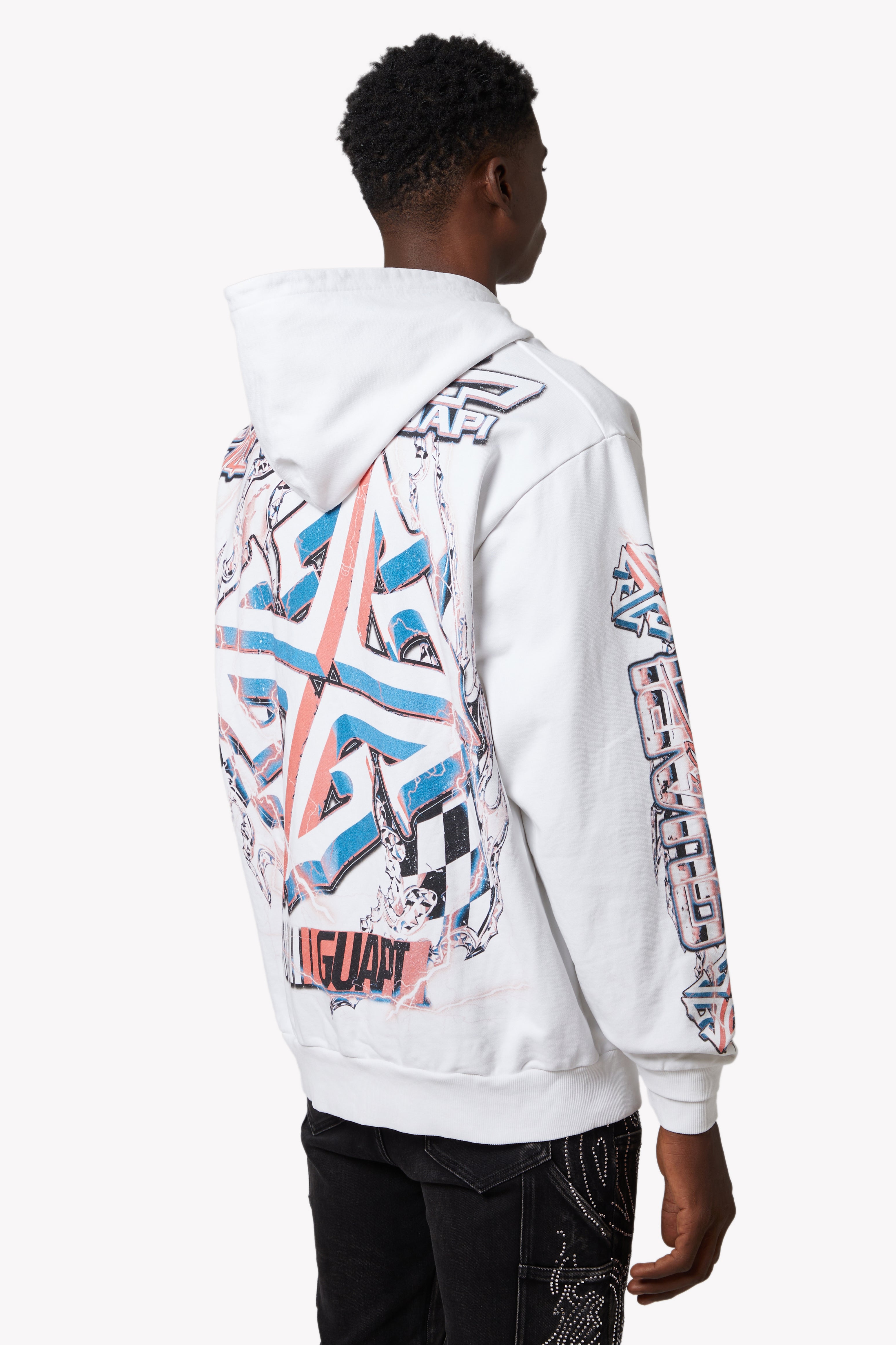 A statement piece from the GUAPI Racing line, the White Nitro Drift Hoodie V1 delivers unapologetic energy, inspired by the chaos of underground car battles and the electrifying speed of drift culture. This oversized hoodie is printed with a vibrant multi-color graphic of muscle cars locked in high-octane action, set against lightning bolts and GUAPI’s signature branding.