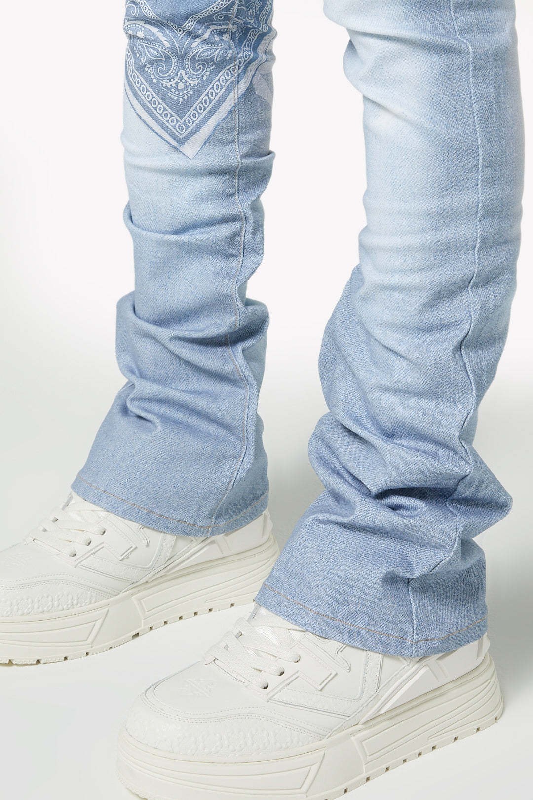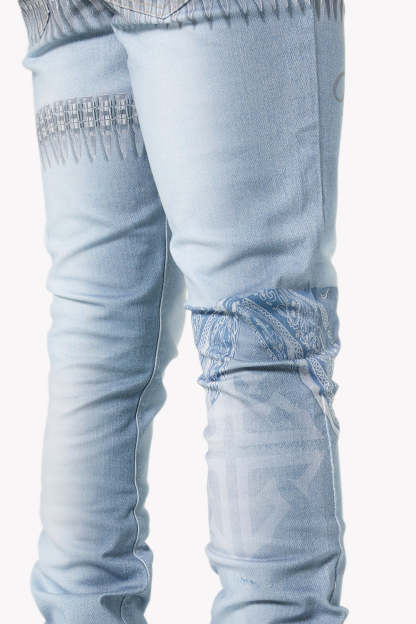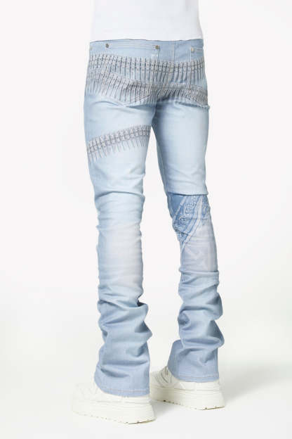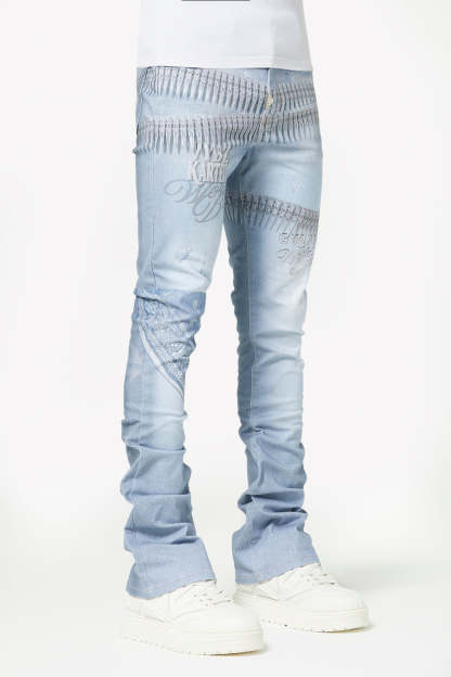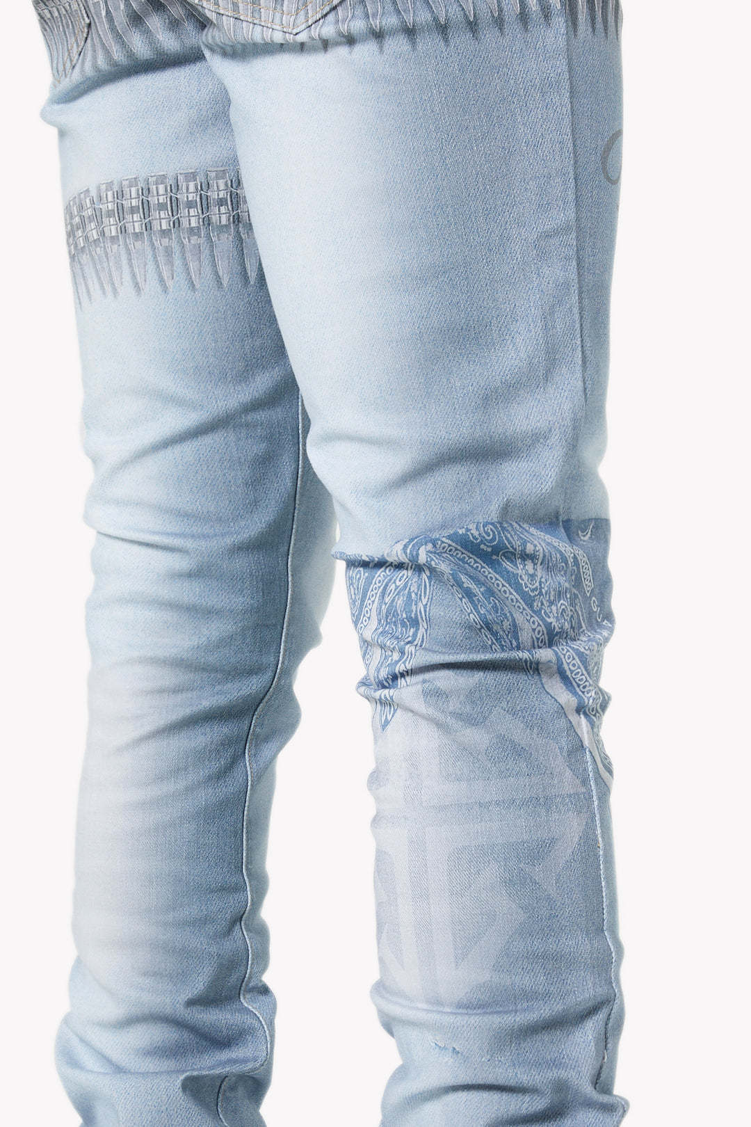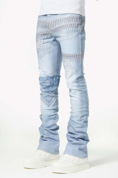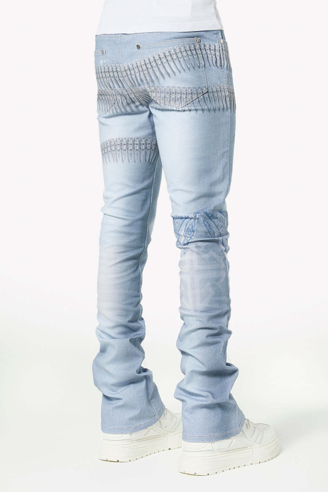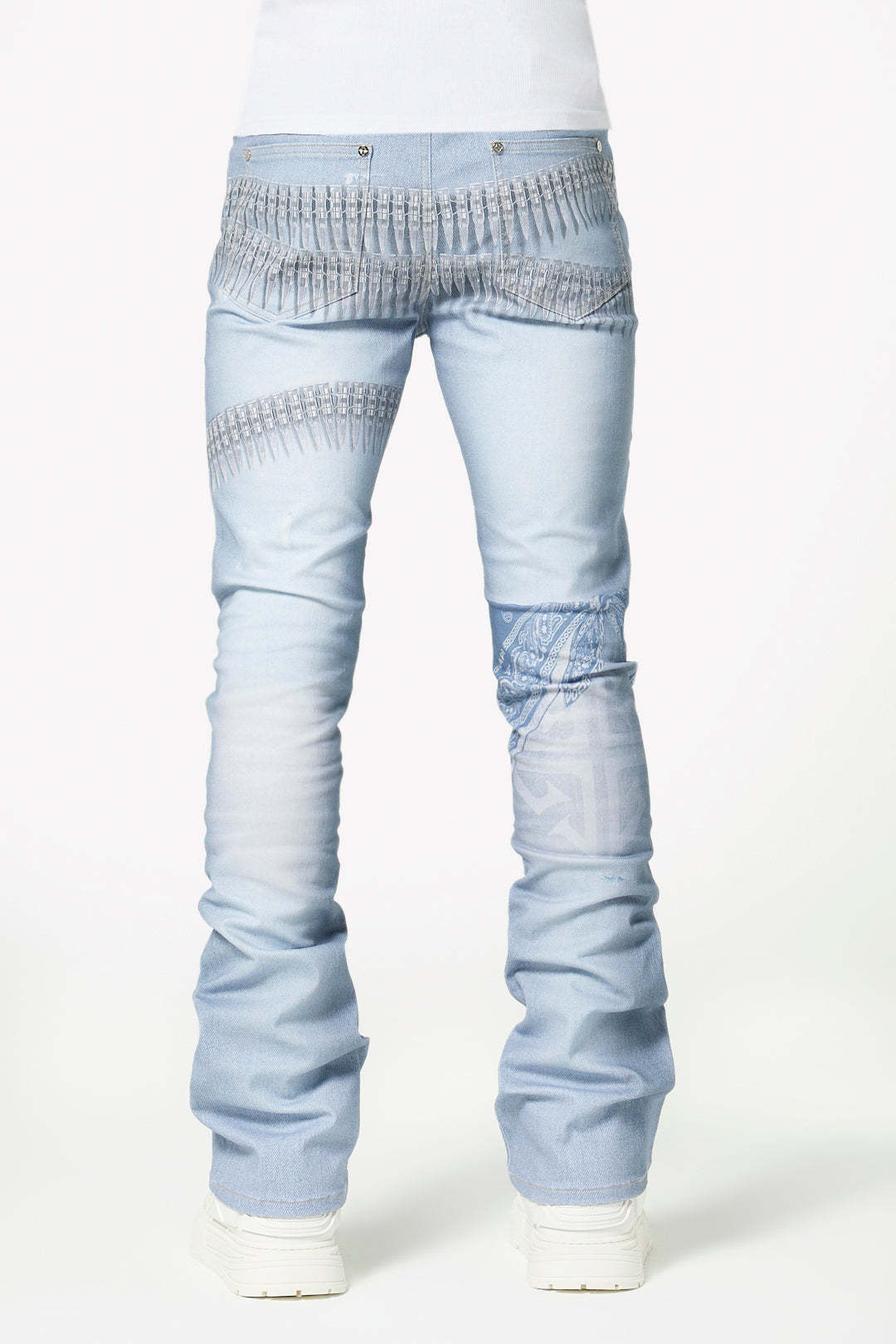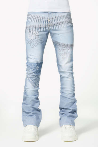 Make a statement in this signature light-wash denim featuring bold all-over graphics and elevated streetwear details. The World Boss Ammo Denim V4 blends vintage-inspired distressing with modern printed accents for a look that stands out on and off stage.